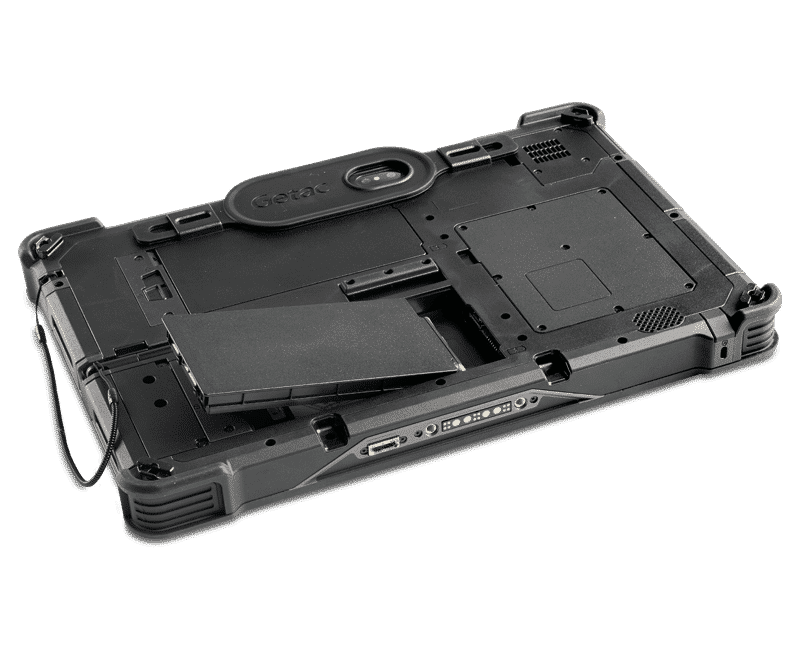 | Accessories | Battery (10.8V, typical 3220mAh; min. 3120mAh) AC adapter (65W, 100-240VAC) Capacitive stylus with tether Optional: Carry bag Battery (10.8V, typical 3220mAh; min. 3120mAh) Multi-Bay charger (Dual-Bay) Multi-Bay charger (Eight-Bay) AC adapter (65W, 100-240VAC) Office dock AC adapter (90W, 100-240VAC) MIL-STD-461 AC adapter (90W, 100-240VAC) DC-DC vehicle adapter (120W, 11-32VDC) Capacitive stylus with tether Protection film Hard handle Rotating hand strap with kickstand Rubber hand strap Shoulder strap (2-point) Shoulder harness (4-point; handsfree) Vehicle cradle xi Vehicle dock xi Office dock 100W Type-C adapter Getac rugged keyboard |