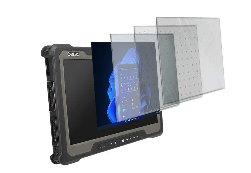 14" TFT LCD HD (1366 x 768) Protection film 1,000 nits LumiBond® display with Getac sunlight readable technology Capacitive multi-touch screen Optional: 14" Wide Viewing Angle TFT LCD FHD (1920 x 1080) 800nits LumiBond® display with Getac sunlight readable technology and capacitive multi-touch screen |