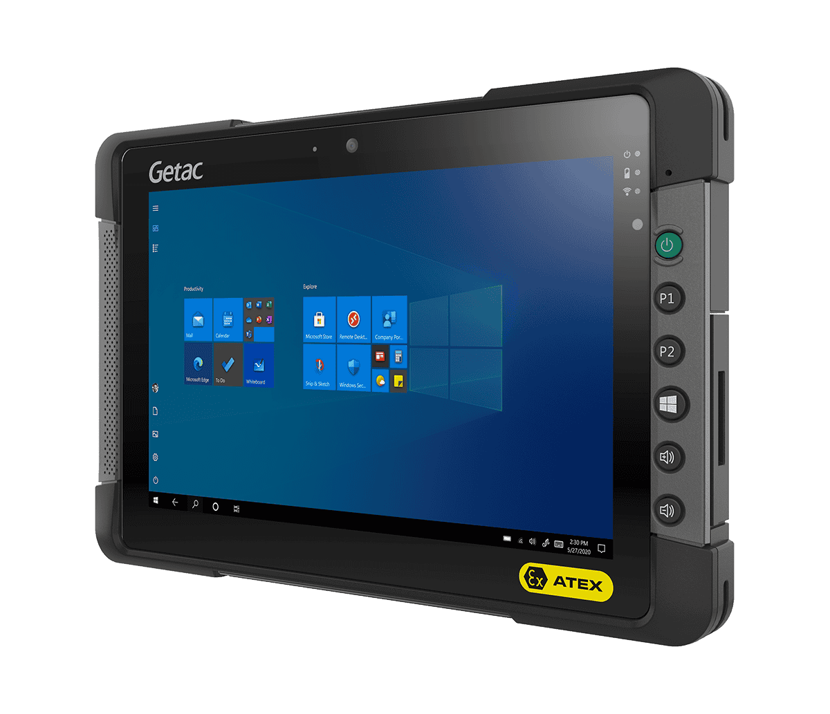 The Getac T800-EX fully rugged tablet is always there when you need it. Its 8.1" screen is just the right size to get things done and its thin, ergonomic design allows you to hold it comfortably in one hand.